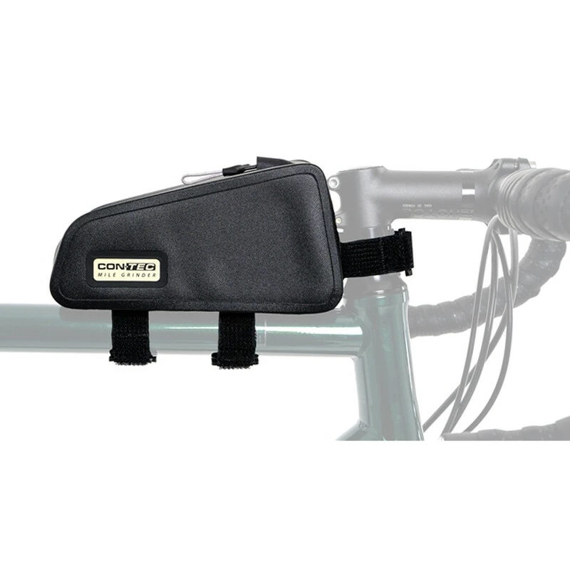 CONTEC Rahmentasche „Mile Grinder Top Tube 1.2“ wasserdichte Oberrohrtasche für Bikepacking aus 600D Polyester mit TPU-Beschichtung, langer RV auf der Oberseite für grosszügigen Zugriff auf Gepäck. Ideal zur Mitnahme von wichtigen Kleinigkeiten wie Handy, Energieriegel etc. Werkzeuglose Befestigung am Oberrohr sowie am Steuerrohr mittels kratzfreier Klettriemen.