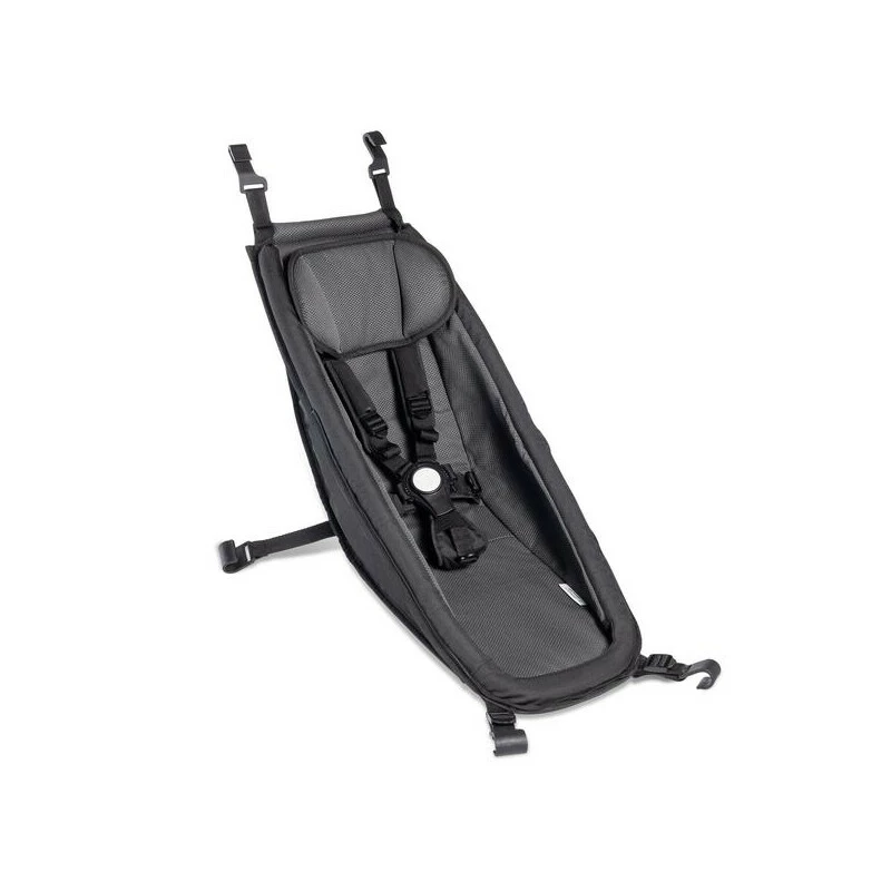 Die ergonomische Form des Babysitzes wurde speziell für eine ausgeglichene Liegeposition in Kinderfahrradanhängern entwickelt.