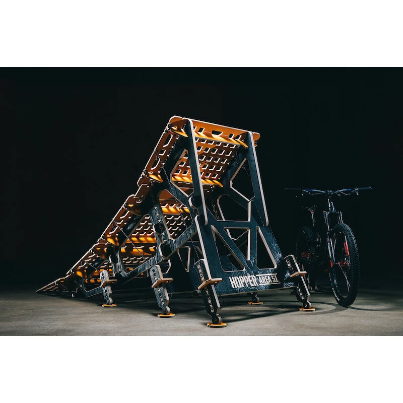 Die Oberfläche der Rampe ist nicht für kleine Radsportarten geeignet. Sie ist perfekt für jede Art von Dirt/Slopestyle-Tricks, sie kann mit Enduro, Downhill, BMX, Ski, Snowboard, etc. verwendet werden.