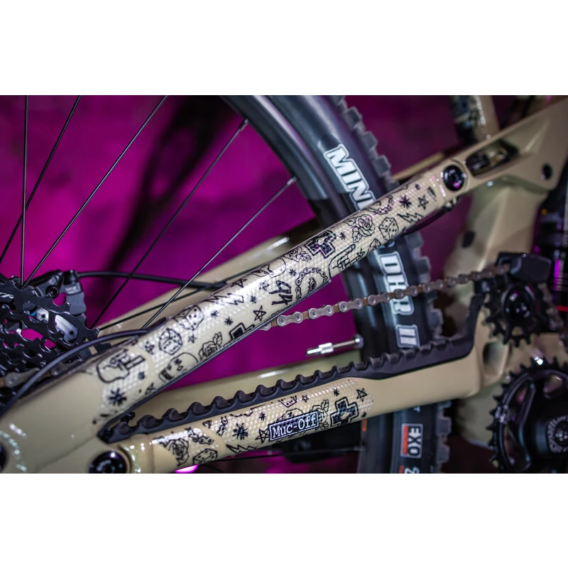 Entwickelt von Grund auf mit unserem brandneuen proprietärenMuc-Off Cube-Tec-Material: Ultrastarke selbstklebende 3M-Rückseite,verbunden mit einer knallharten, abriebfesten PVC-Oberschicht. Das ist dieperfekte Kombination, um #fullsend Schutz zu bieten, während es flexibelflexibel genug, um sich so ziemlich jeder Rahmengeometrie anzupassen.Sie sind einfach zu installieren und in einer Vielzahl von kranken Grafiken erhältlich, umnach deinem Geschmack.