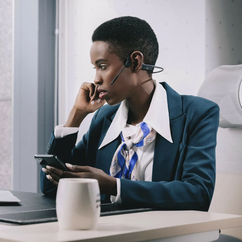 Geniesse hohen Tragekomfort während deine Ohren frei bleiben. Das OpenComm Headset mit Bone-Conduction Technologie ermöglicht dir einen kristallklaren Sound beim Telefonieren. Bekomme auch während der Arbeit mit, was um dich herum passiert! Ausgestattet mit der 7. Generation Bone-Conduction Technologie liefert dieses Headset qualitativ hochwertiges Audio und du bleibst mit deiner Umgebung in Verbindung, sei es auf der Strasse oder am Arbeitsplatz. Mit 33g leichtem Design, DSP Noise-Cancelling Mikrofon, Schnelllade-Technologie und der NFC-Kopplung ist OpenComm die perfekte Wahl für reibungslose Kommunikation und effiziente Produktivität.