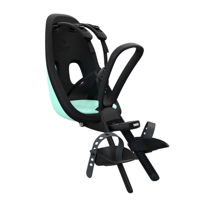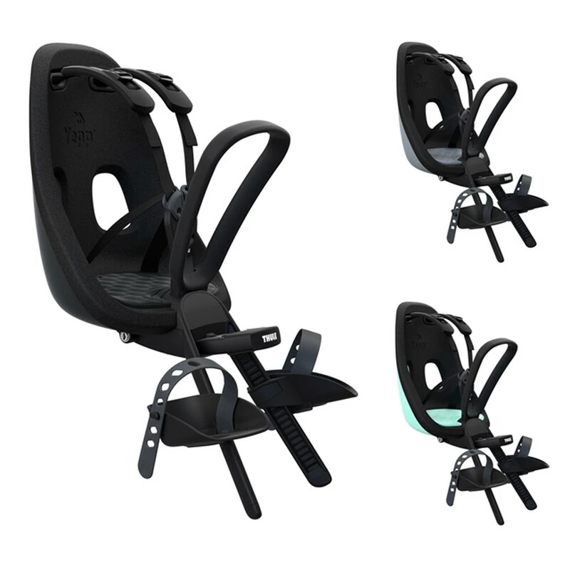 Leichter und eleganter, vorne angebrachter Fahrradkindersitz mit pfiffigem Design für Fahrten in der Stadt.