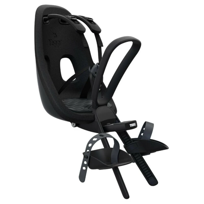 Leichter und eleganter, vorne angebrachter Fahrradkindersitz mit pfiffigem Design für Fahrten in der Stadt.